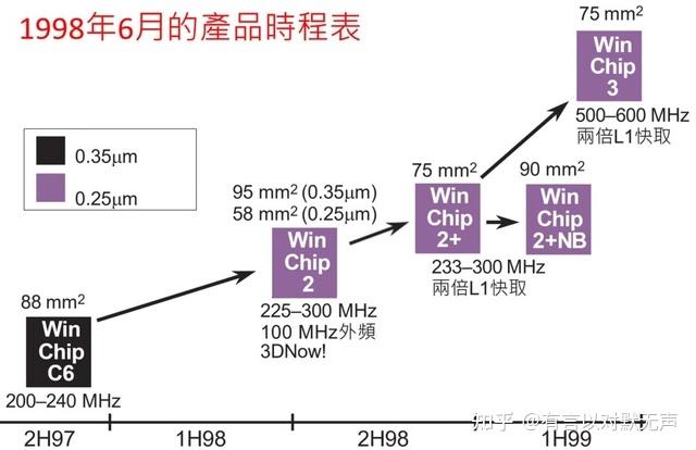 - Winchip C6采用0.35微米4层金属CMOS技术,支持MMX,具有64 Kib L1高速缓存。