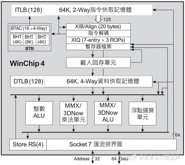 - WinChip比竞争对手(如AMD K5/K6)简单得多,因为它具有单宽度流水线和顺序执行微架构。